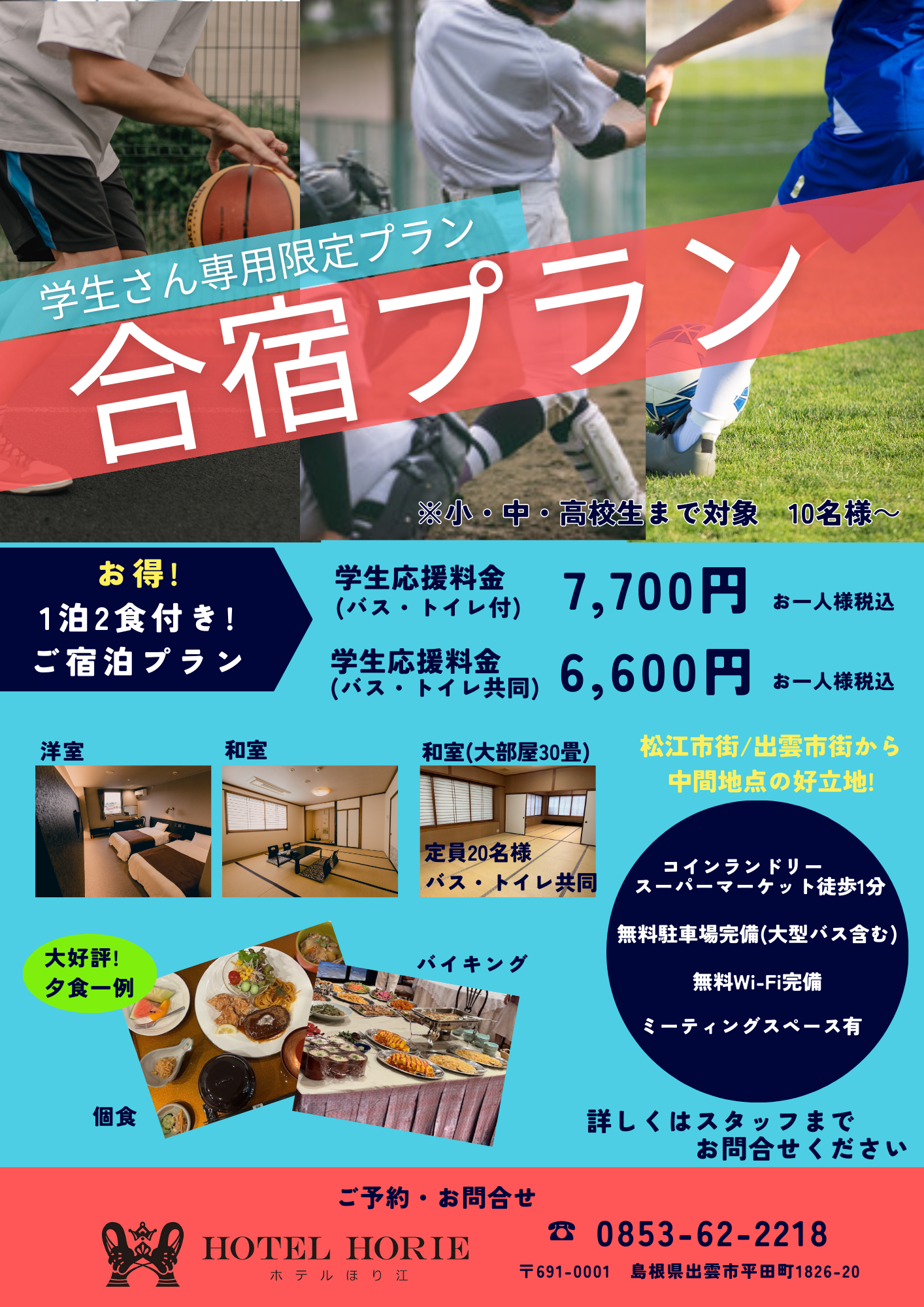 合宿プラン・修学旅行プランのご利用に。